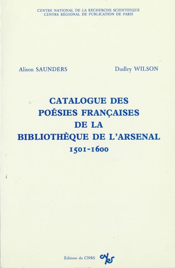 Catalogue des poésies françaises de la bibliothèque de l’Arsenal, 1501-1600